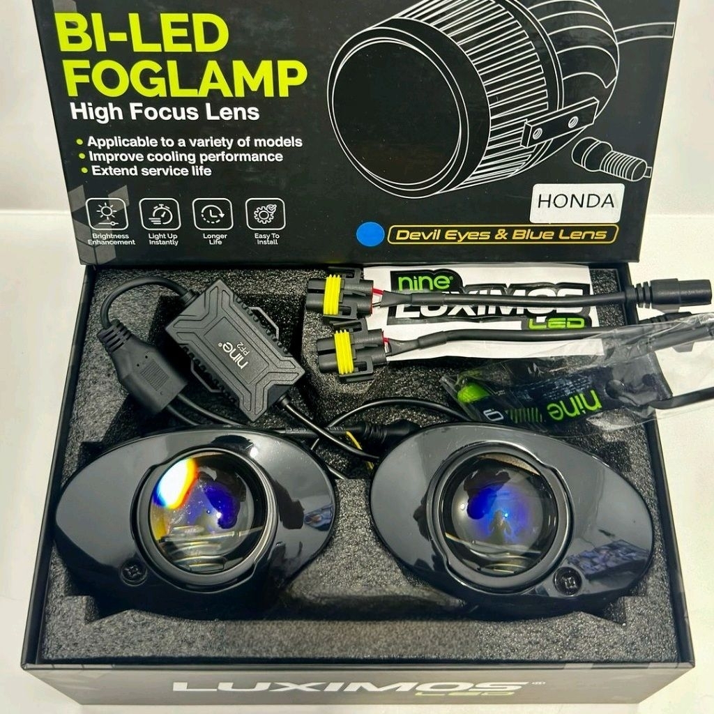 Foglamp Projecroe BI-LED Honda Oval 2 Inch Blue Lens 3 Warna 80 Watt Nine Luximos PF2 Waterproof