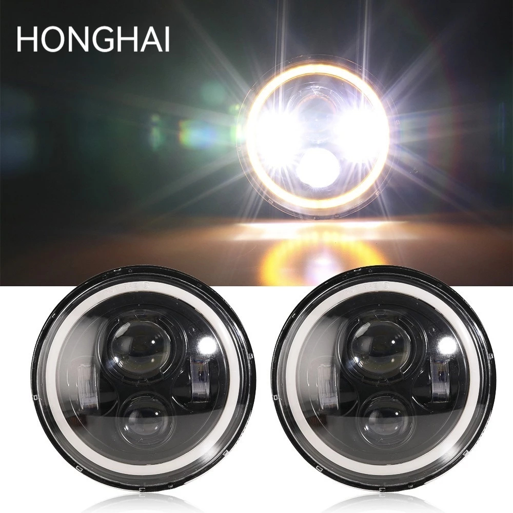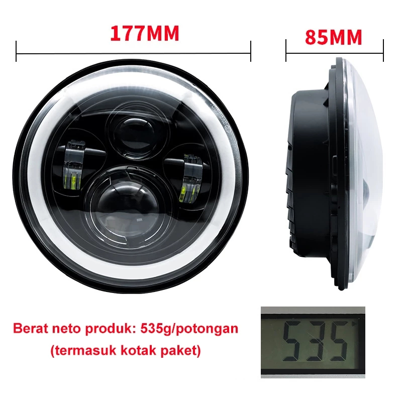Lampu Utama Mobil 7 Inch Projie Plus 4 LED Dipimpin Lampu Depan Bulat Sepeda Motor Jeep Jimny Katana Cocok untuk 9-36V