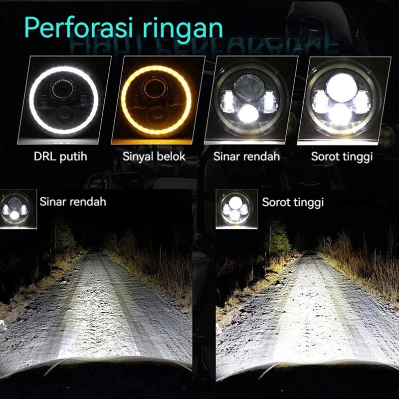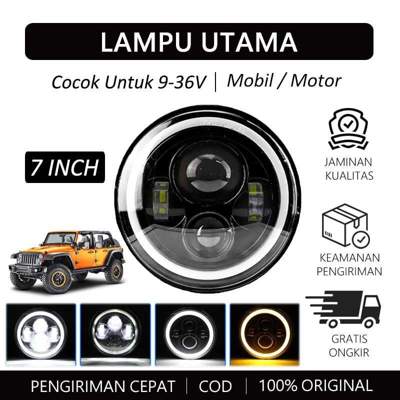 Lampu Utama Mobil 7 Inch Projie Plus 4 LED Dipimpin Lampu Depan Bulat Sepeda Motor Jeep Jimny Katana Cocok untuk 9-36V