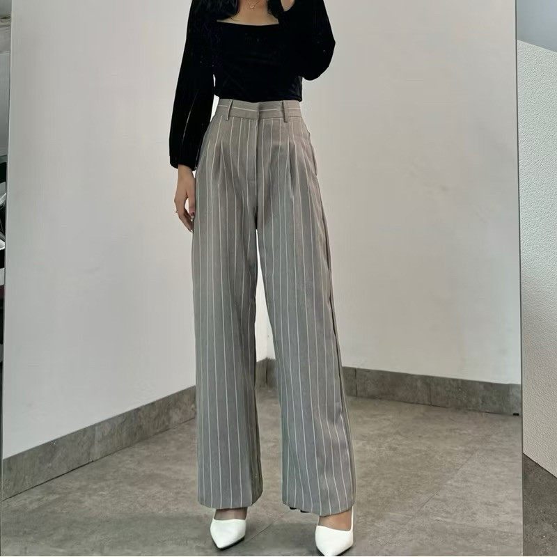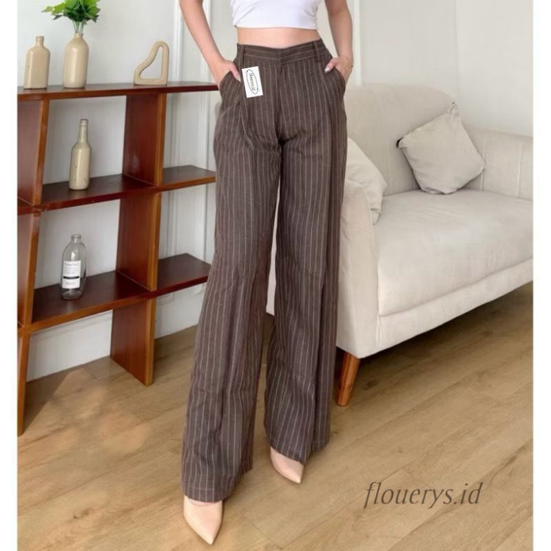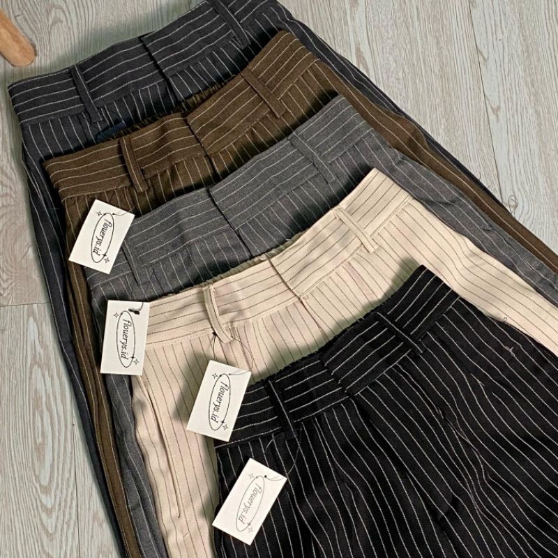 Loose Pants Stripe Trouser Wanita - Celana Anti Kusut - Celana Kulot Wanita -Celana formal model Selur