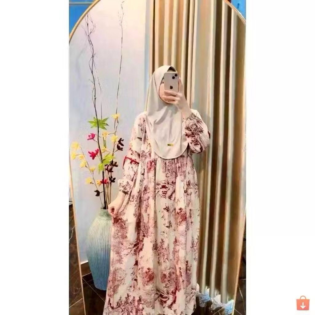 Dress Anjani Gamis Rayon Diamond Premium – Gamis Lengan Balon Pita, Motif Cantik Elegan Kekinian