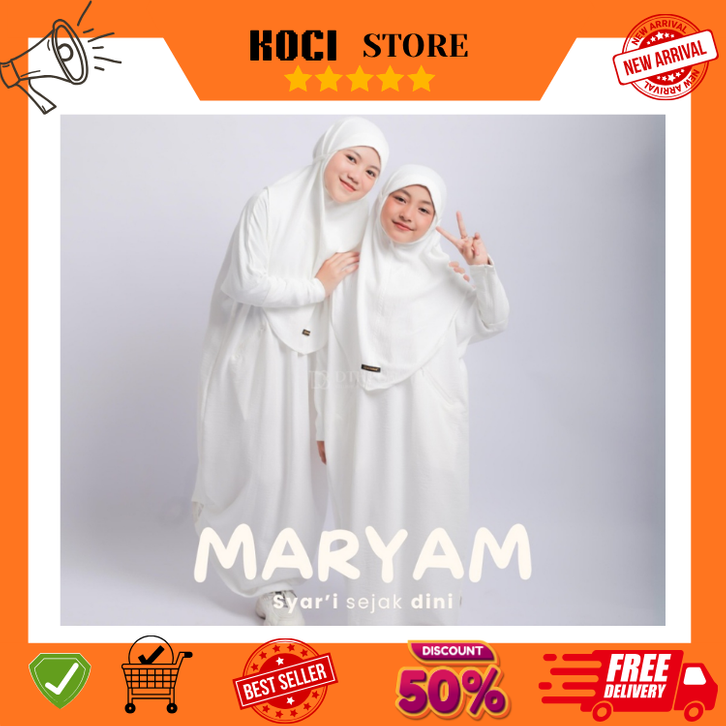 Dthree - Abaya Anak Maryam Series ( Putih ) Gamis Anak Perempuan putih / Gamis Anak Syar'i Set Dress Lebaran 2026