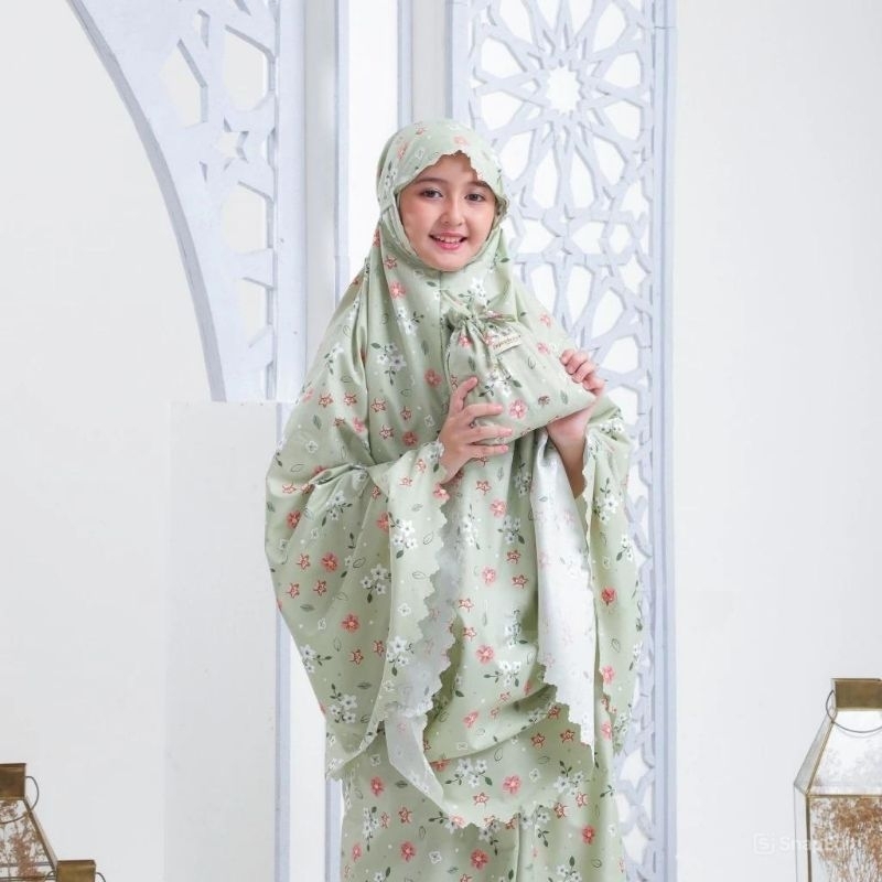 Mukena Anak Sd Terbaru Travel Mini Pouch 2In1 Mukena Anak Katun Print 6-13 Tahun
