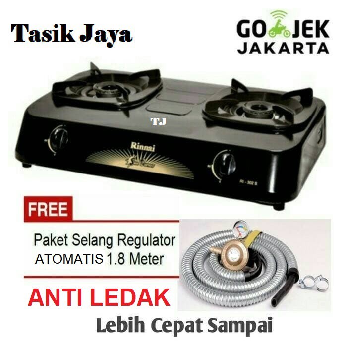 Paket Kompor Gas Rinnai 302S / 302-S 2 Tungku + Selang Paket Otomatis