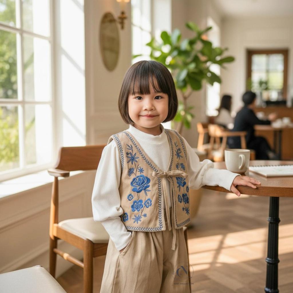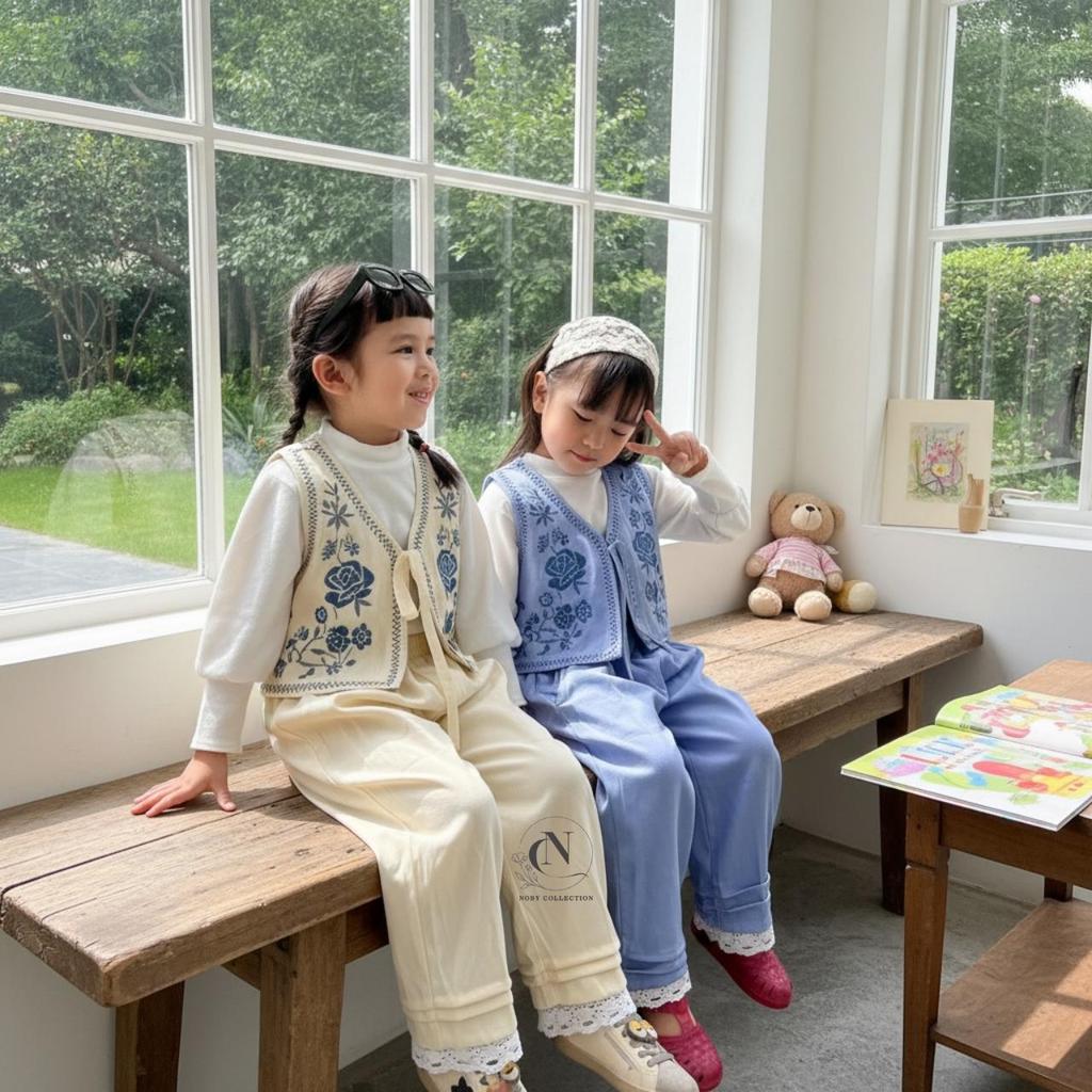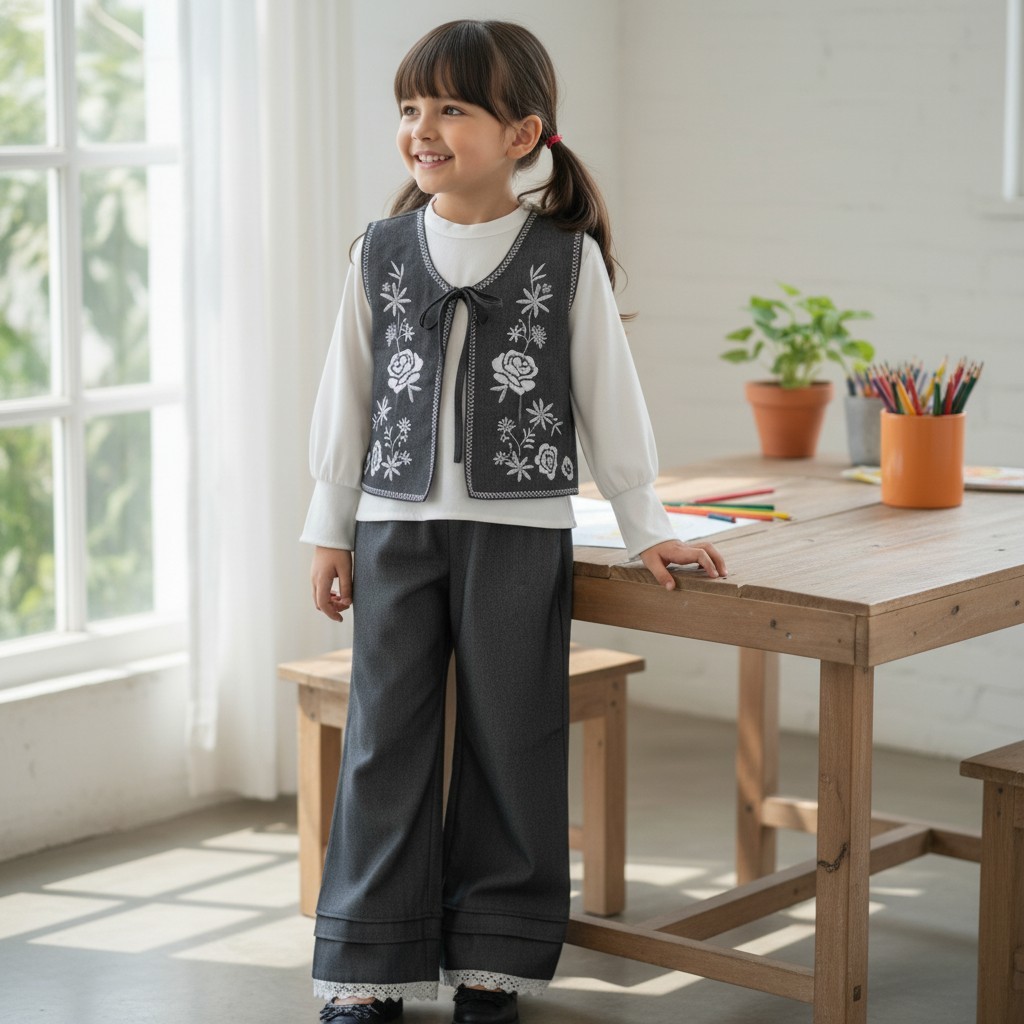 Haruka Setelan Celana Anak Perempuan 3In1 Vest Bordir Zr Bahan Jeans Gray Modis & Nyaman Untuk Tampil Stylish