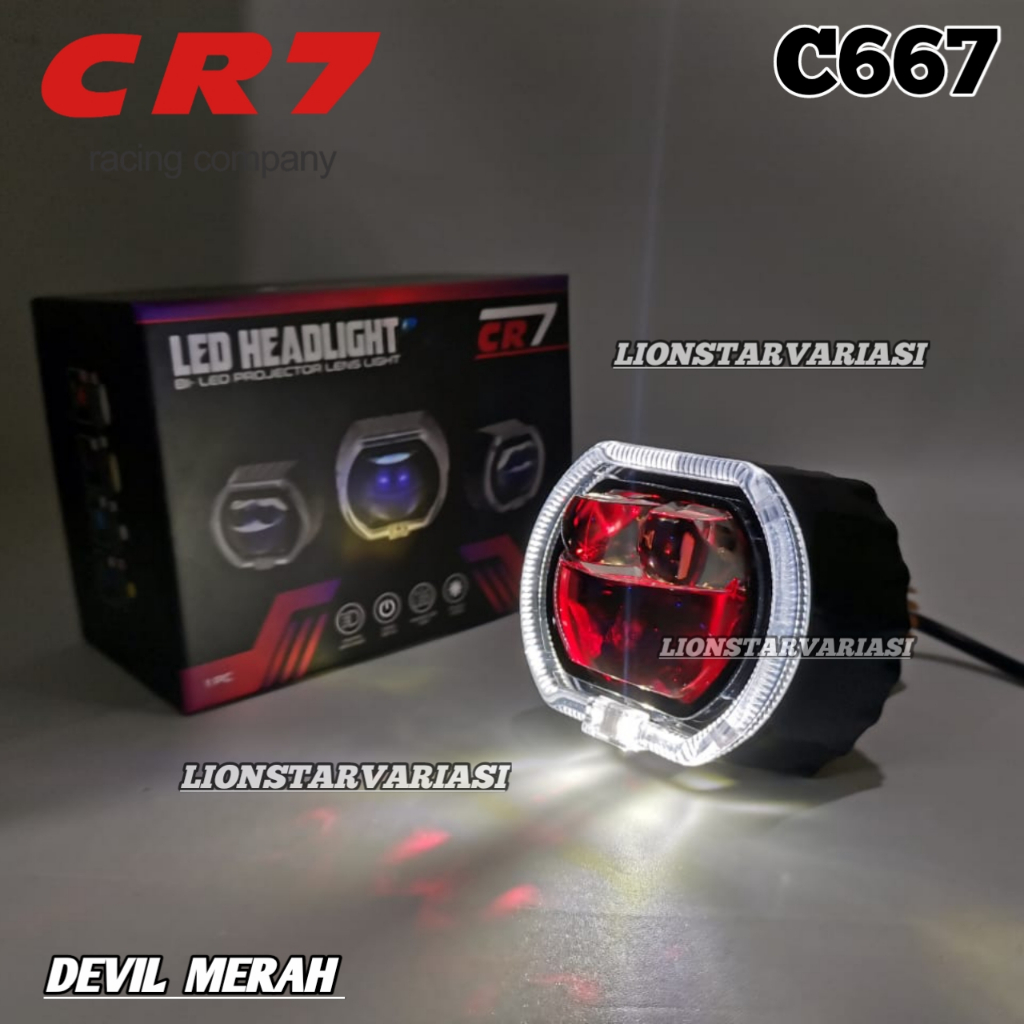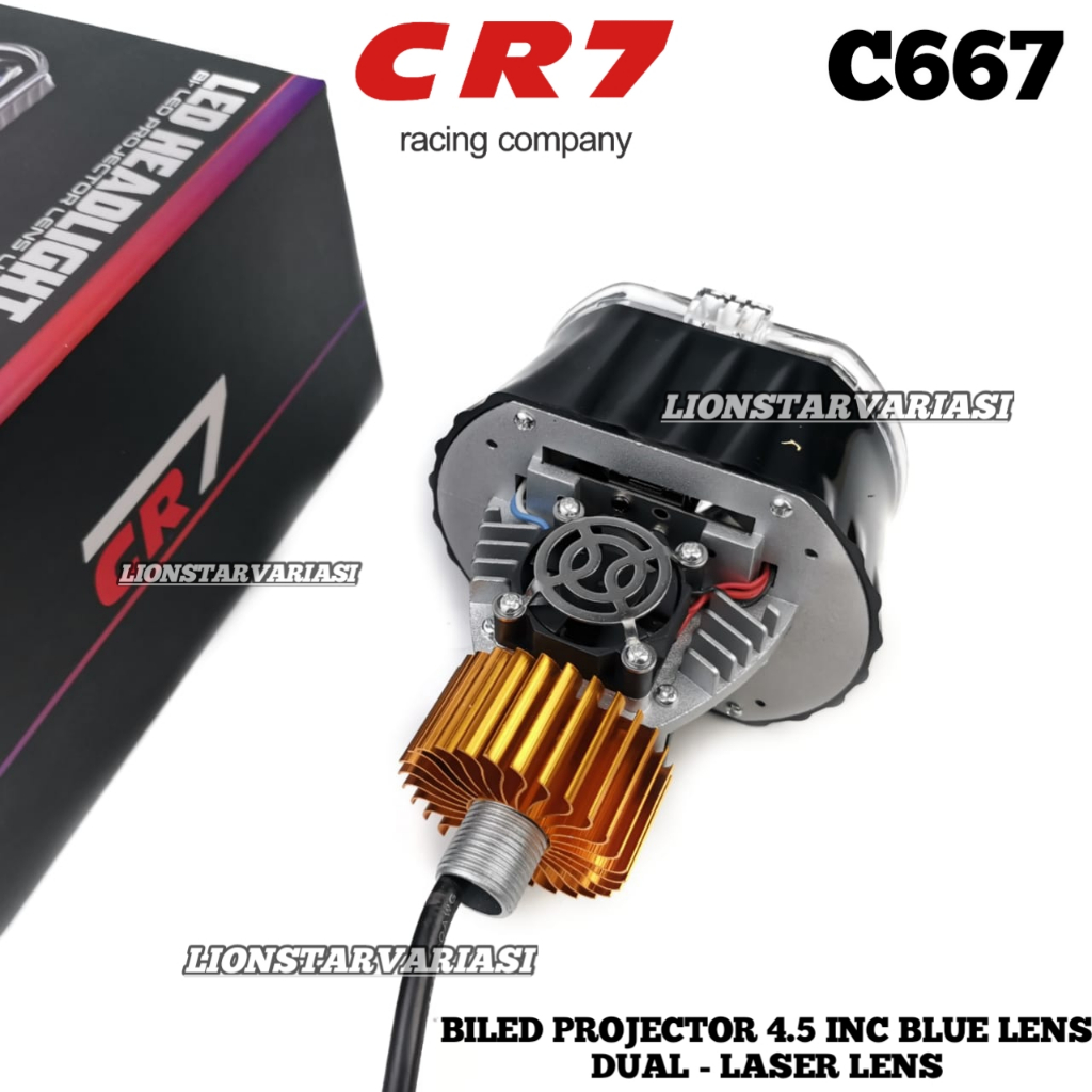 Cr7 C667 - Biled Projector 4.5 Inch Blue Lens Plus 2 Mata Laser Devil Shroud Kipas High Low Flat Cut
