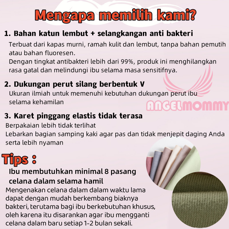 5Pcs Angel Mommy Celana Dalam Ibu Hamil Jumbo Pinggang Rendah Celana Dalam Ibu Hamil Katun Murni Katun Elastis Mulus