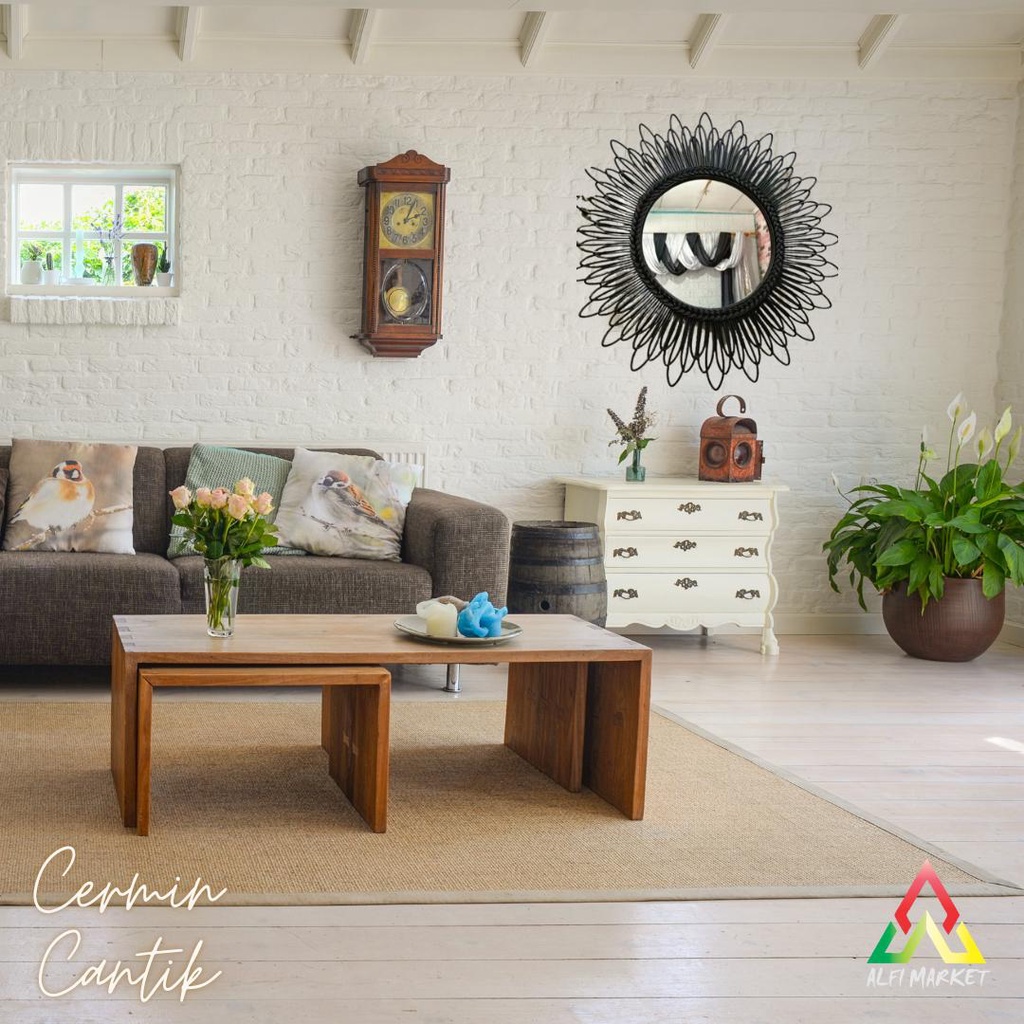 Alfi Kaca Rotan Model Baru | Cermin Cantik | Aesthetic Mirror | Hiasan Dinding | Home Decor Tegak