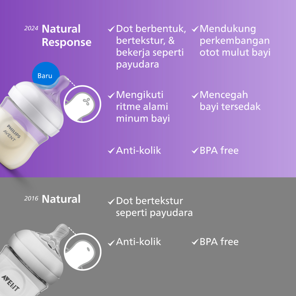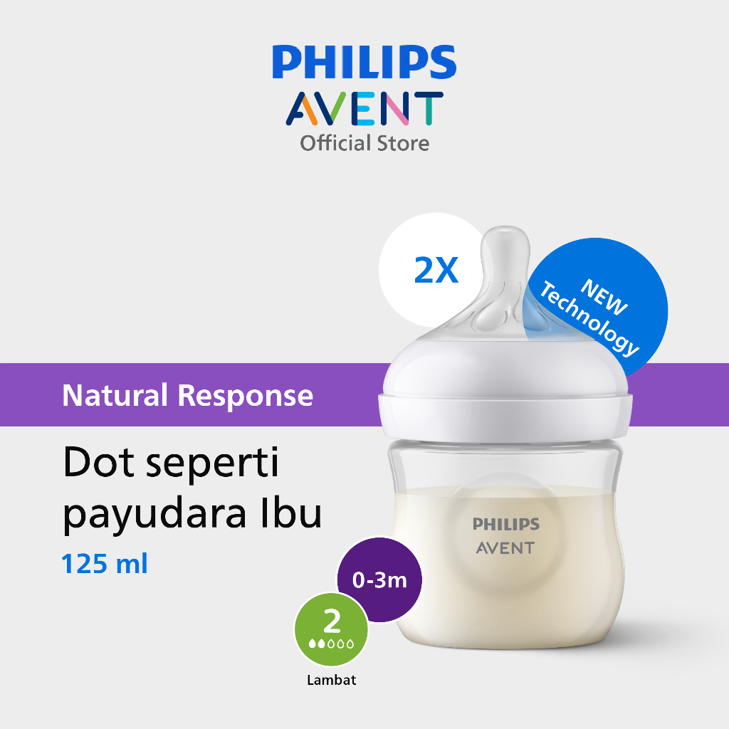 Philips Avent | Botol Susu Bayi | Natural Response | Dot Seperti Payudara Ibu | 125 Ml | Twin | Scy900/02
