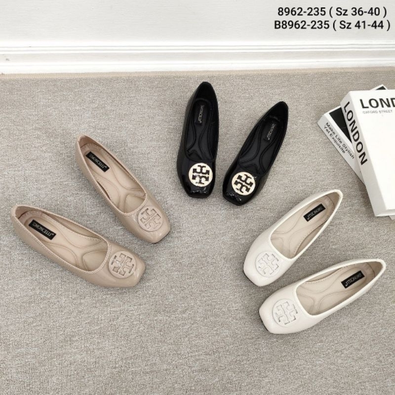Simoncelli Sepatu Big Size Dan Normal 36-44 Wanita Flatshoes Mutiara Polos Sepatu Kerja Hitam Black Cewek Acara Pesta Ko