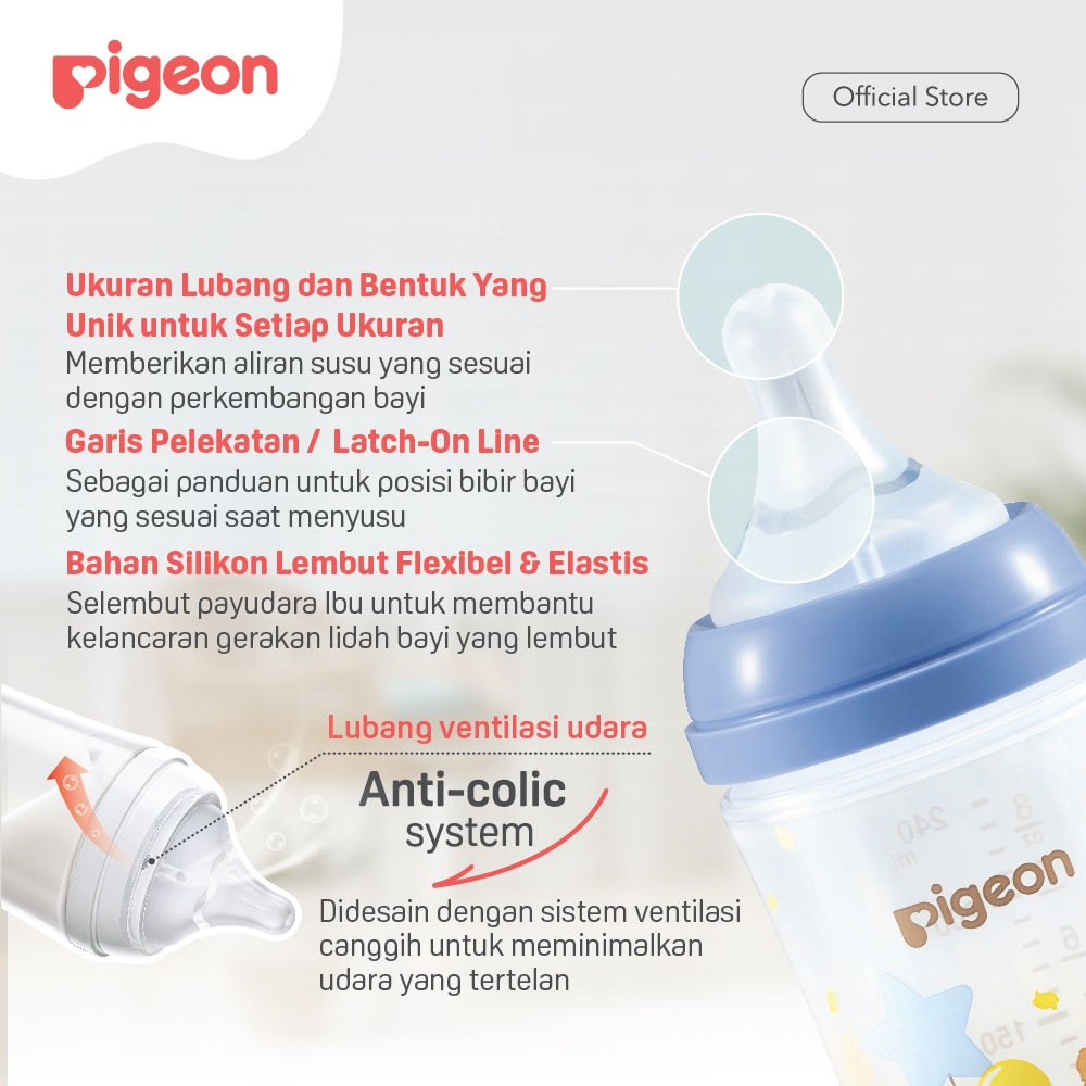 Pigeon Botol Bpp Wide Neck 240Ml W/Softouch Nipple | Pilih Variasi | Botol Susu Bayi | Botol Susu Newborn | Ramah Lingku