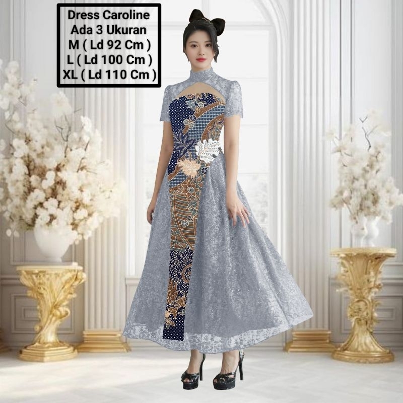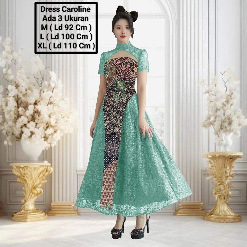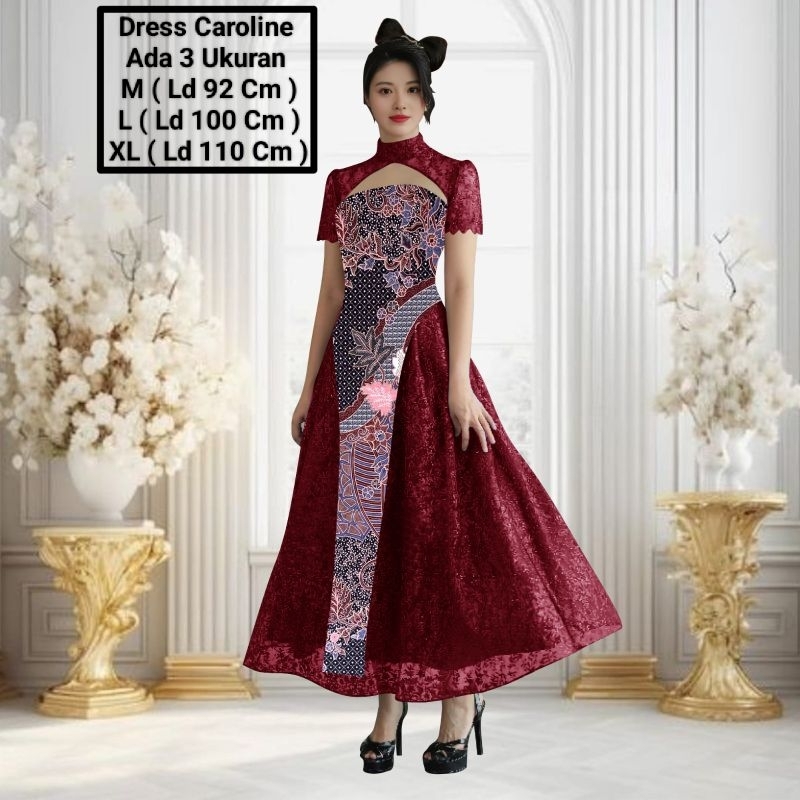 Dress Batik Modern Elegant Premium Cocok Untuk Pesta,Kondangan,Natal/Dress Caroline Batik Size M-L-Xl/Matt Brokat Mutiar