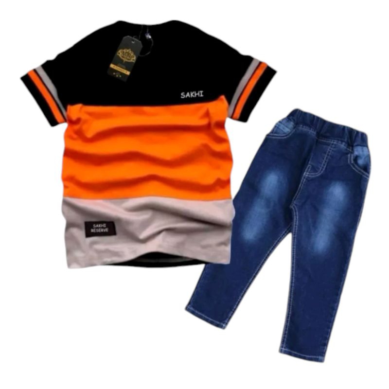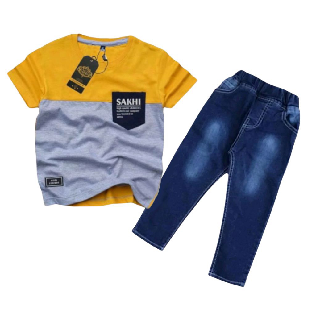 Setelan Anak Laki Laki Untuk Anak Usia 1-12 Tahun Baju Kaos Dan Celana Jeans Olnevy
