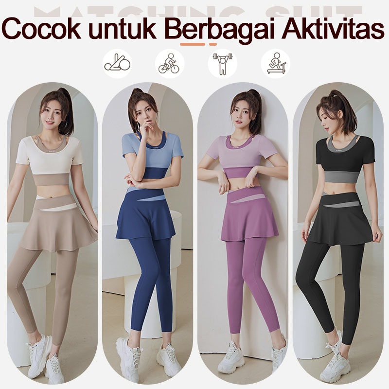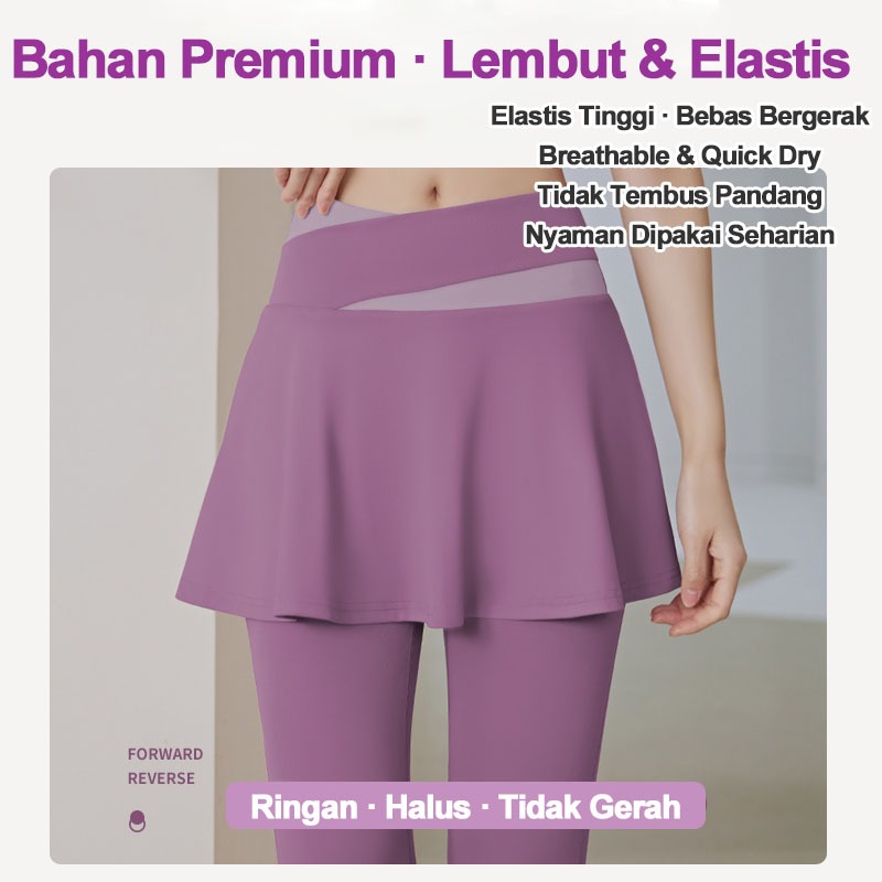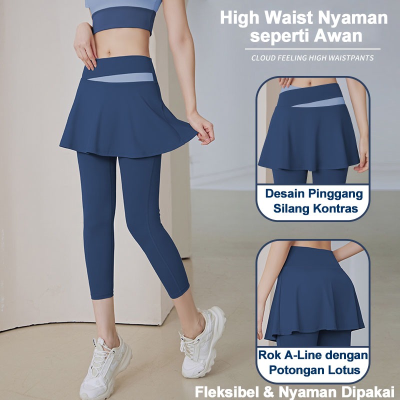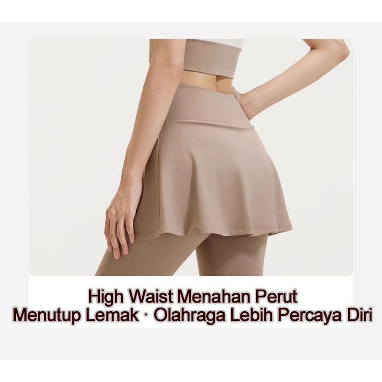 Sunpor Legging Celana Olahraga Wanita Rok Celana Skirt High Waist Polos Yoga Dua Lapis Gym Tennis Running Sport