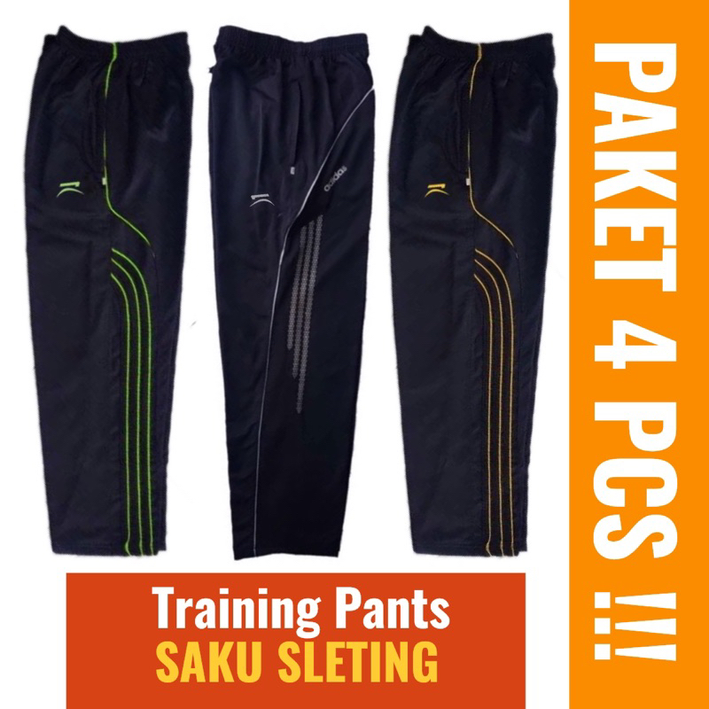 Paket 4 Pcs Celana Training Saku Sleting Bahan Tebal / Celana Trening Olahraga Saku Sleting / Celana Trening Panjang