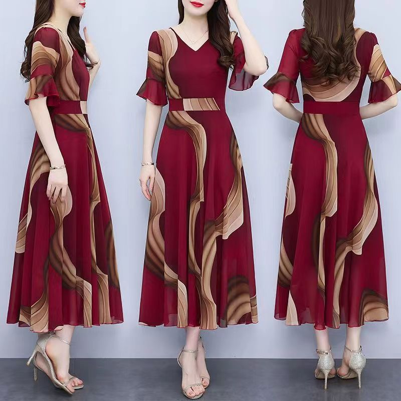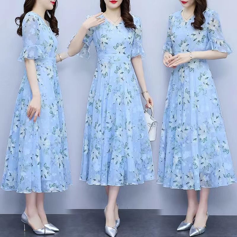 Dress Batik Floral /Dress Korean Style Midi Dress/Dress Kondangan Mewah/Dress Sifon Pesta Dewasa