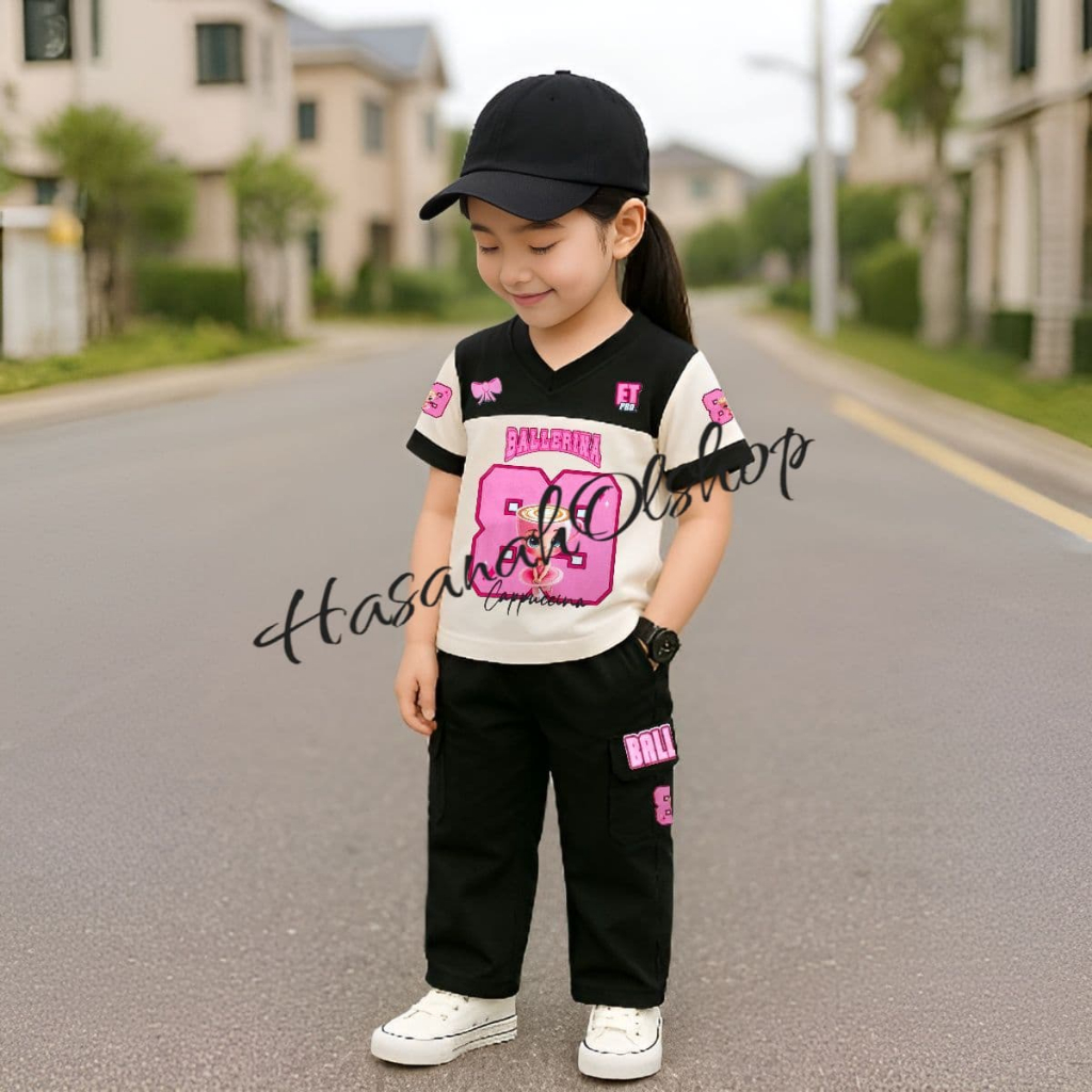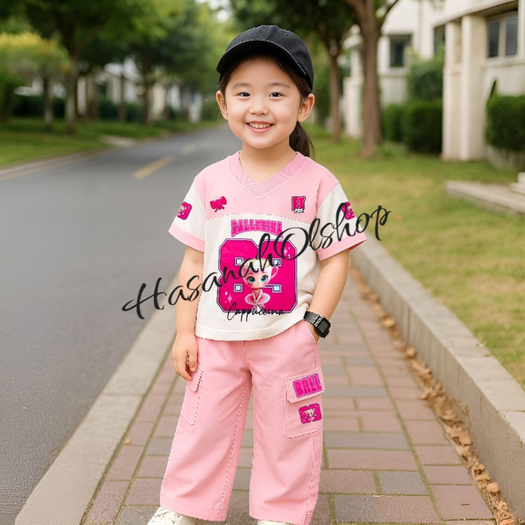 Setelan Baju Anak Perempuan Anomali Ballerina Cappuccina Celana Panjang Cargo Usia 3-12 Tahun