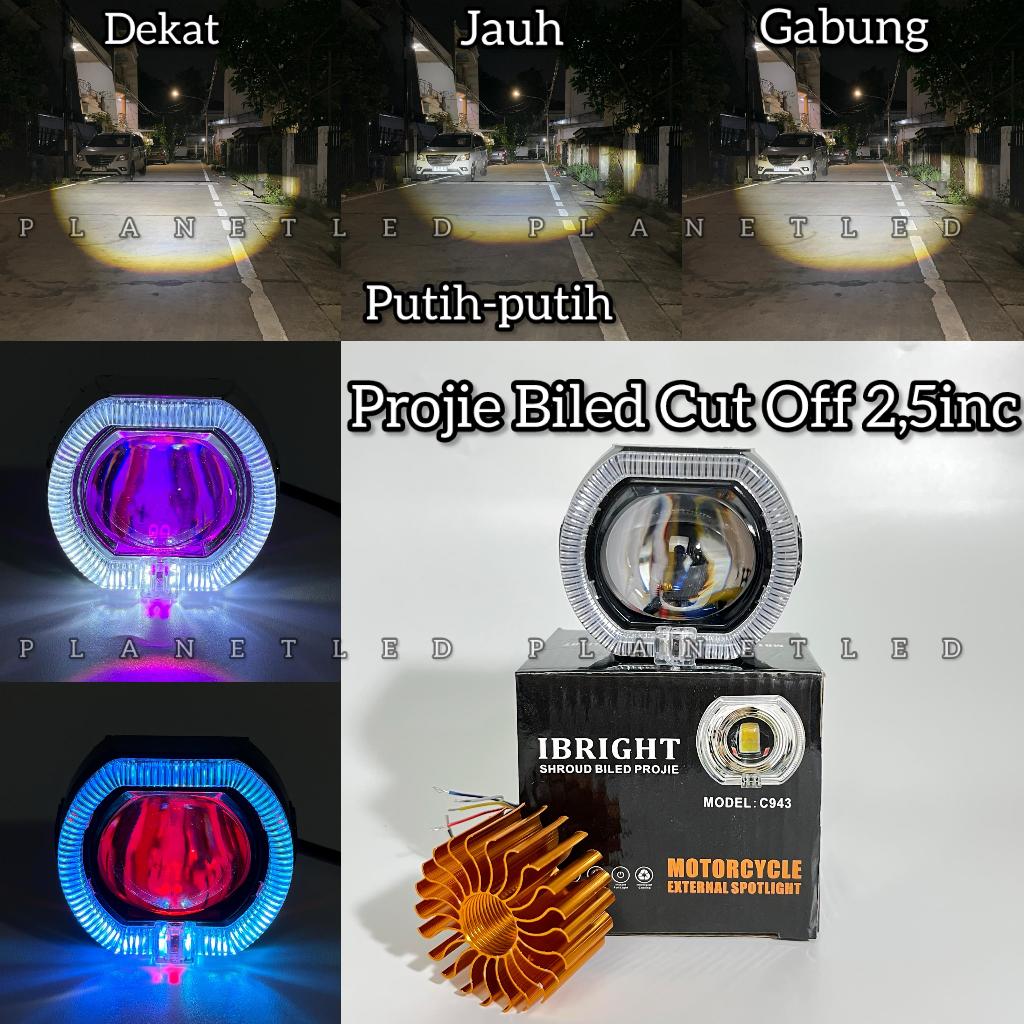 IBRIGHT - Lampu projie C943 Mini Biled 2,5 inc Dengan Shroud + Devil Tembak Laser Cut Off 30W High Low