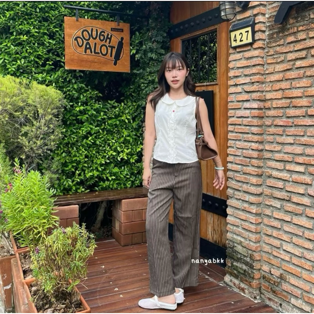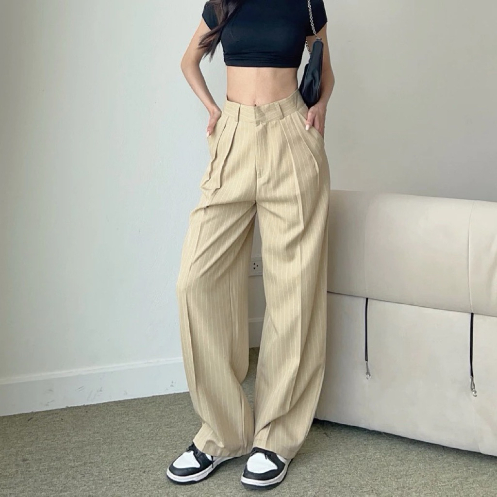 Stripe Pants - Loose Pants Stripe Trousers Wanita - Celana Kulot Wanita Highwaist -Celana Panjang Garis Striped Formal / Casual