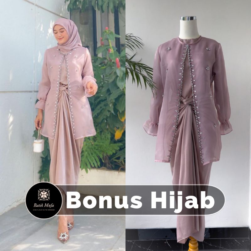 (ADA JUMBO) ONESET JEMMA ORGANZA - OUTFIT KONDANGAN SETELAN ROK LILIT