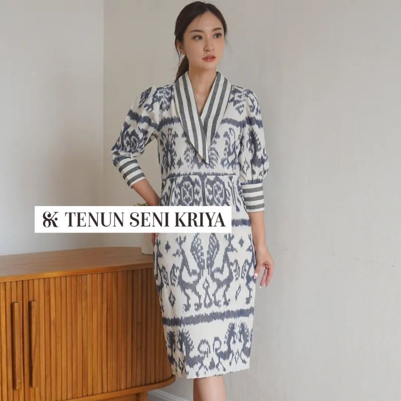 Dress Tenun Kekinian - Baju Tenun Dress Natal - Dress Kekinian - Dress Kondangan