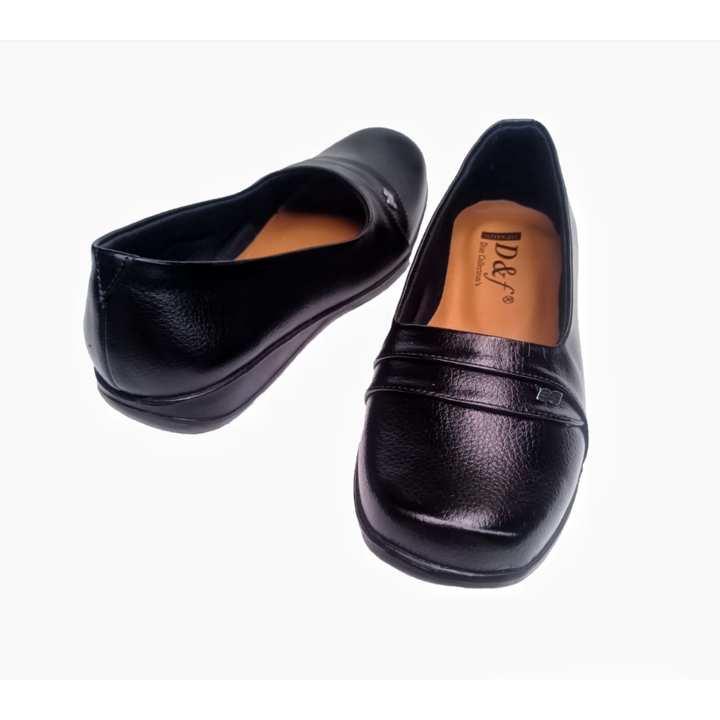 Sepatu Pantofel Wanita Hak Datar D&F Series 442 Flatshoes Hitam Motif Kulit Jeruk