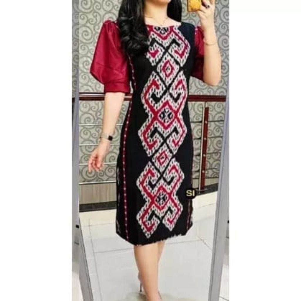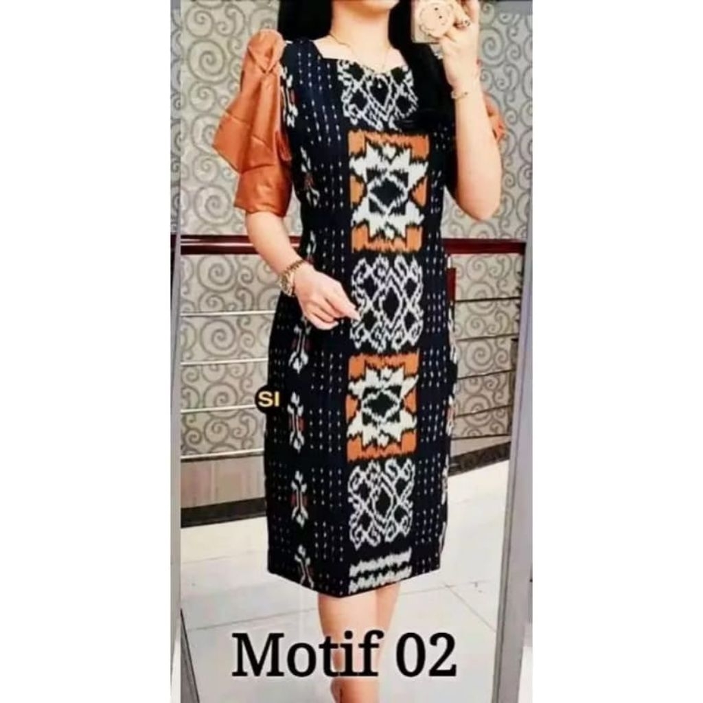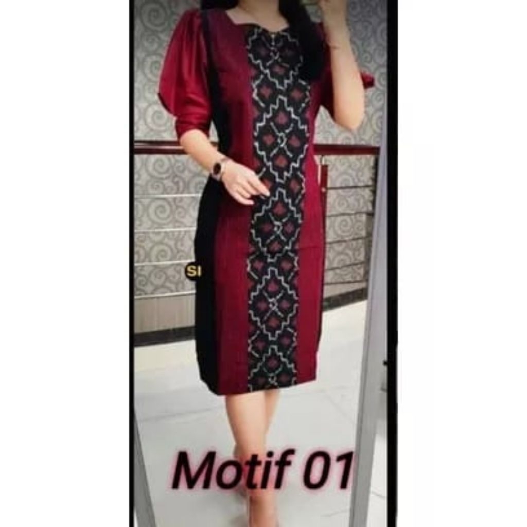 Baju Tenun Wanita, Dress Mix Katun Toyobo ,Tenun Etnik ,Kasual ,Baju Kantoran Terbaru
