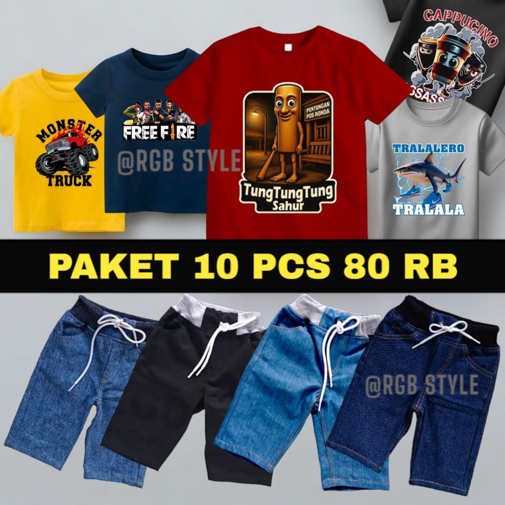 Promo Murah Celana Jeans + Kaos 4 Stel - 5 Pasang Setelan Baju Anak Cowok Usia 2-5-8-12 Tahun Tebal Lembut Laki-Laki Jin