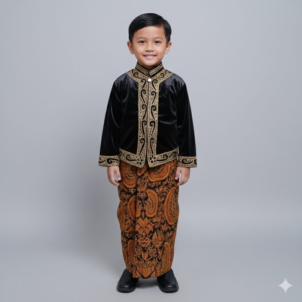 Set Beskap Cowok Bludru Stick Anak (Baju + Rok)