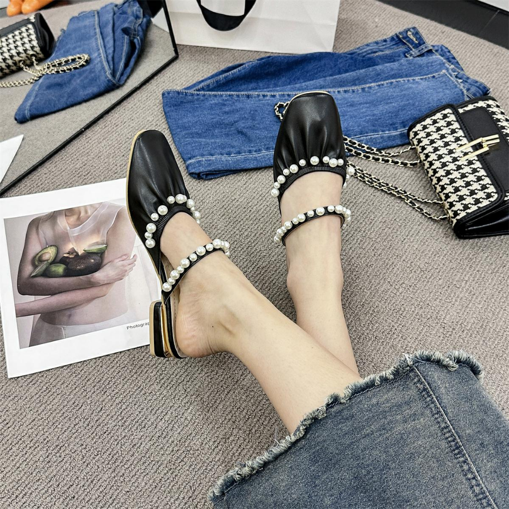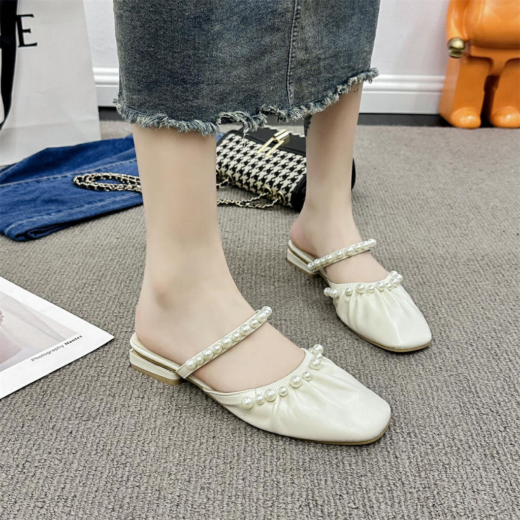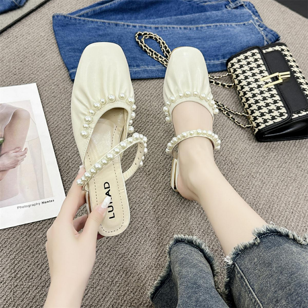 Lurad Sandal Selop Wanita Wl215 Sandal Wanita Korean Style Kekinian Mutiara Hak Tipis Pesta