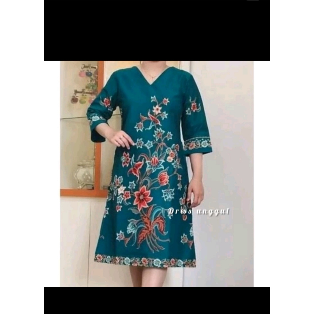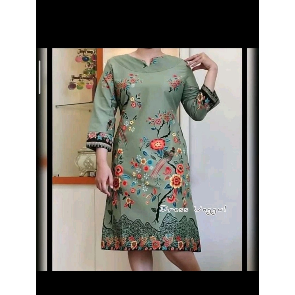 Dress Batik Jumbo || Atasan Wanita Kekinian Sage M L Xl Xxl 3L 4L 5L