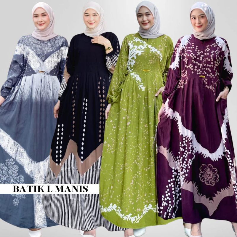 Batik L Manis - Gamis Twill Candimekar Gradasi Best Seller Busui Resleting Depan Basic Size S-M-L-Xl-Xxl-Xxxl Dan 5L Gam