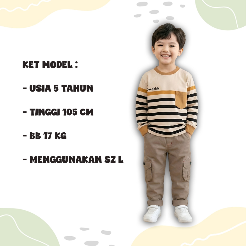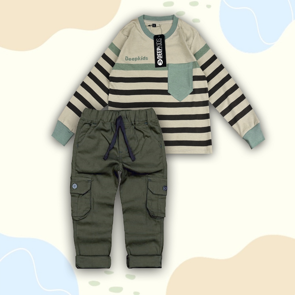 Setelan Anak Laki-Laki Kaos Tangan Panjang & Celana Cargo Panjang Premium Usia 1 2 3 4 5 7 8 9 10 11 12 Tahun | Set Tpgs