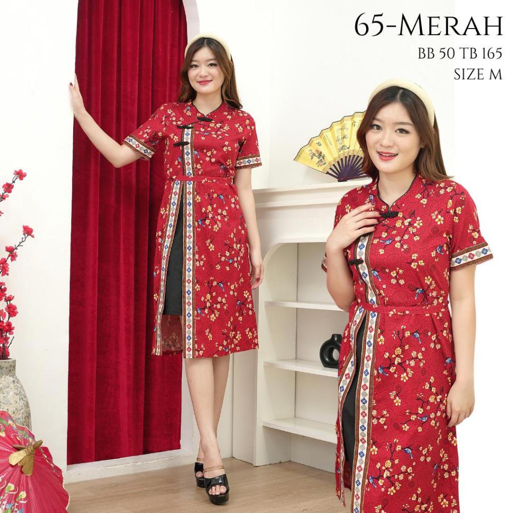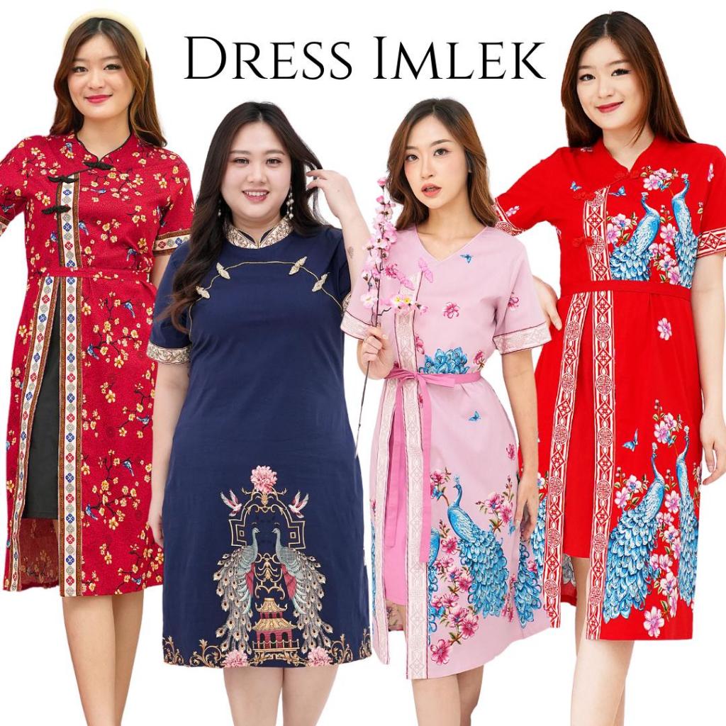 Dress Imlek 2026 Wanita Lengan Pendek Katun Stretch Premium Jumbo Bigsize Cheongsam