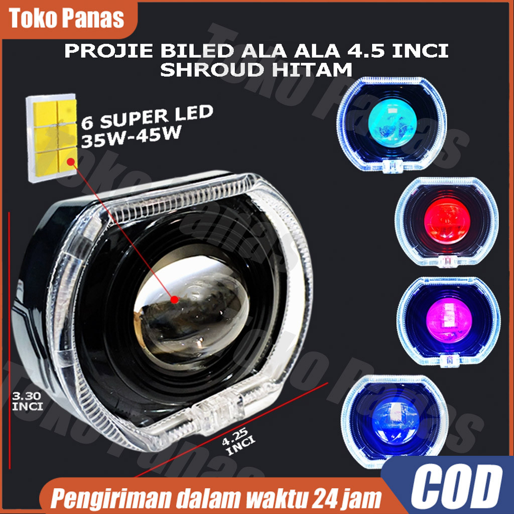 Lampu Proje Biled 4.5 Inch/45 Watt /Biled Projie Cut Off High Low Universal Bisa Motor Mobil /Waterproof/LASER CUT OFF HIGH LOW PLUS SHROUD DEVIL/ Shroud High Low Terbaru /Jamin Terang/ORIGINAL