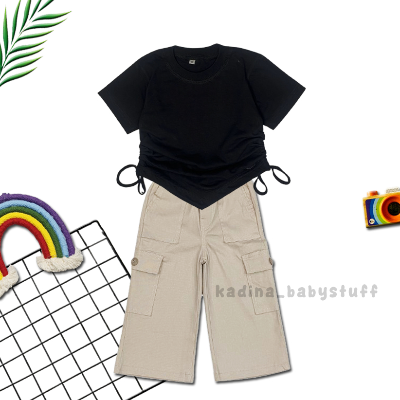 Setelan Anak Perempuan Kekinian Terbaru/Kulot Katun Cargo Import/Combed Serut Polos Usia Anak 2-12 Tahun