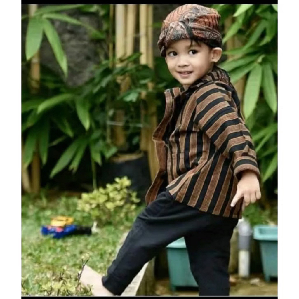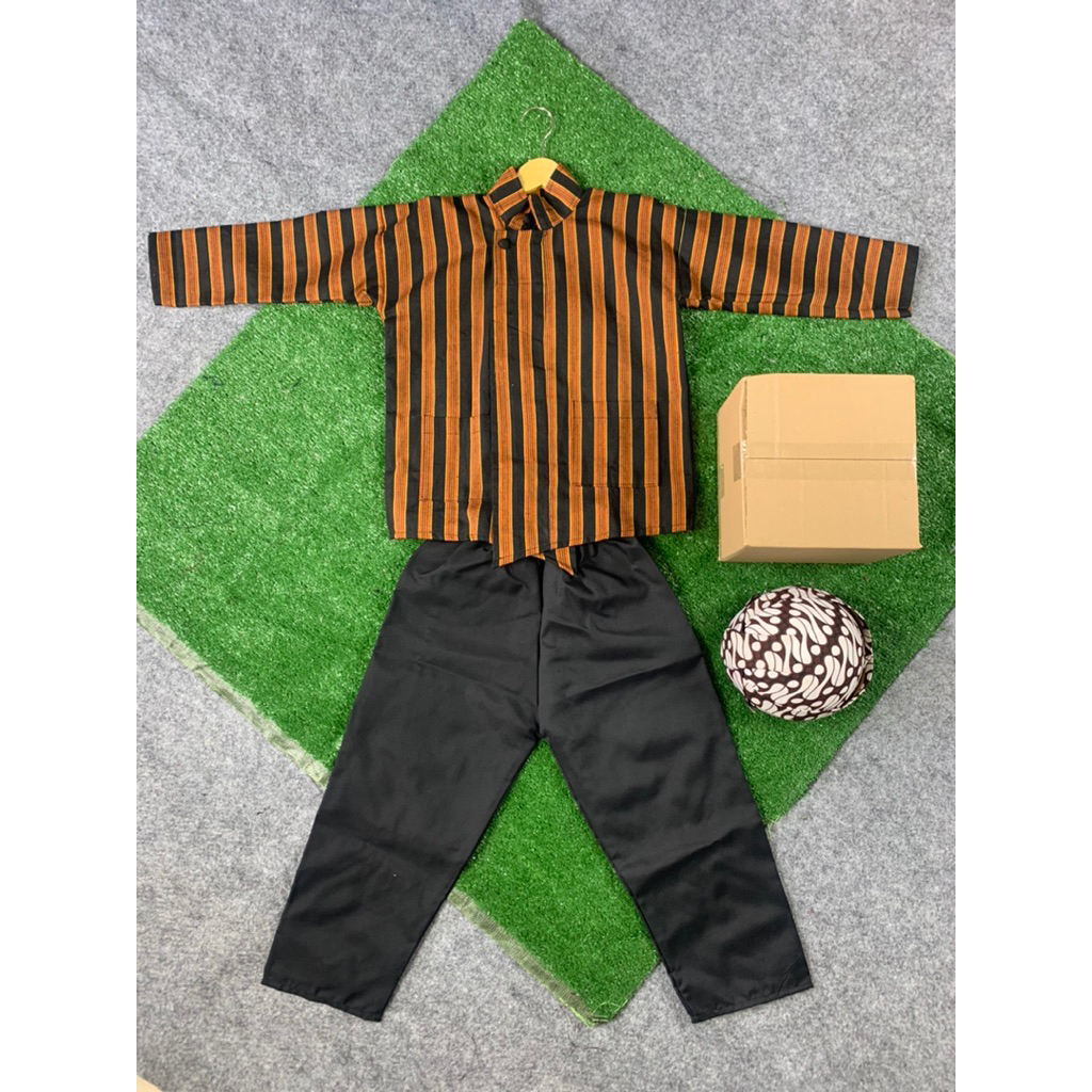 Setelan Baju Adat Jawa Anak (Baju + Celana +Blangkon ) Usia 0-12 Tahun Surjan Lurik Anak Laki Laki