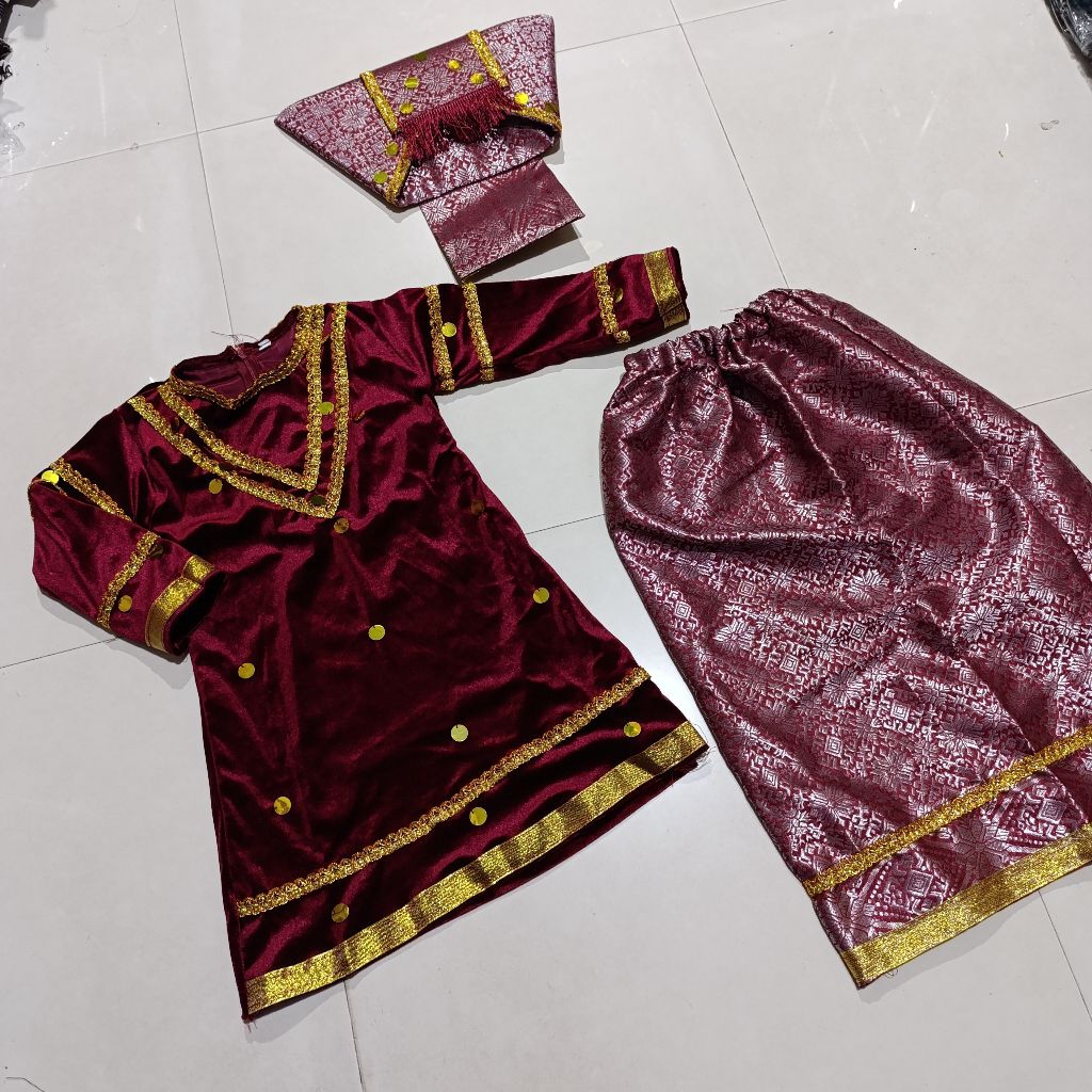 Setelan Baju Bludru Songket Adat Minang Anak / Kostum Anak Adat Padang Minang