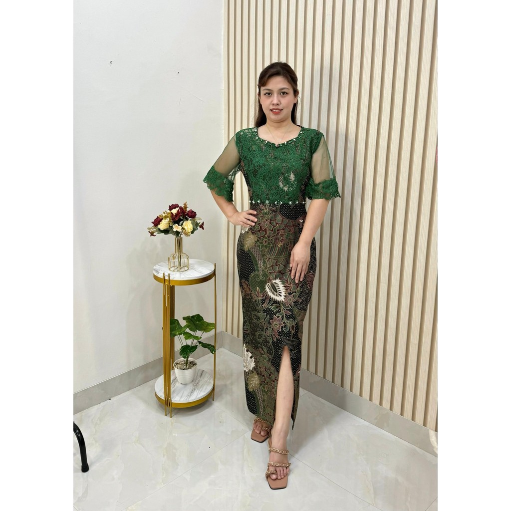 Dress Jodie Batik Brukat Dress Batik Wanita Kekinian Fashion Kondangan Wanita Baju Batik