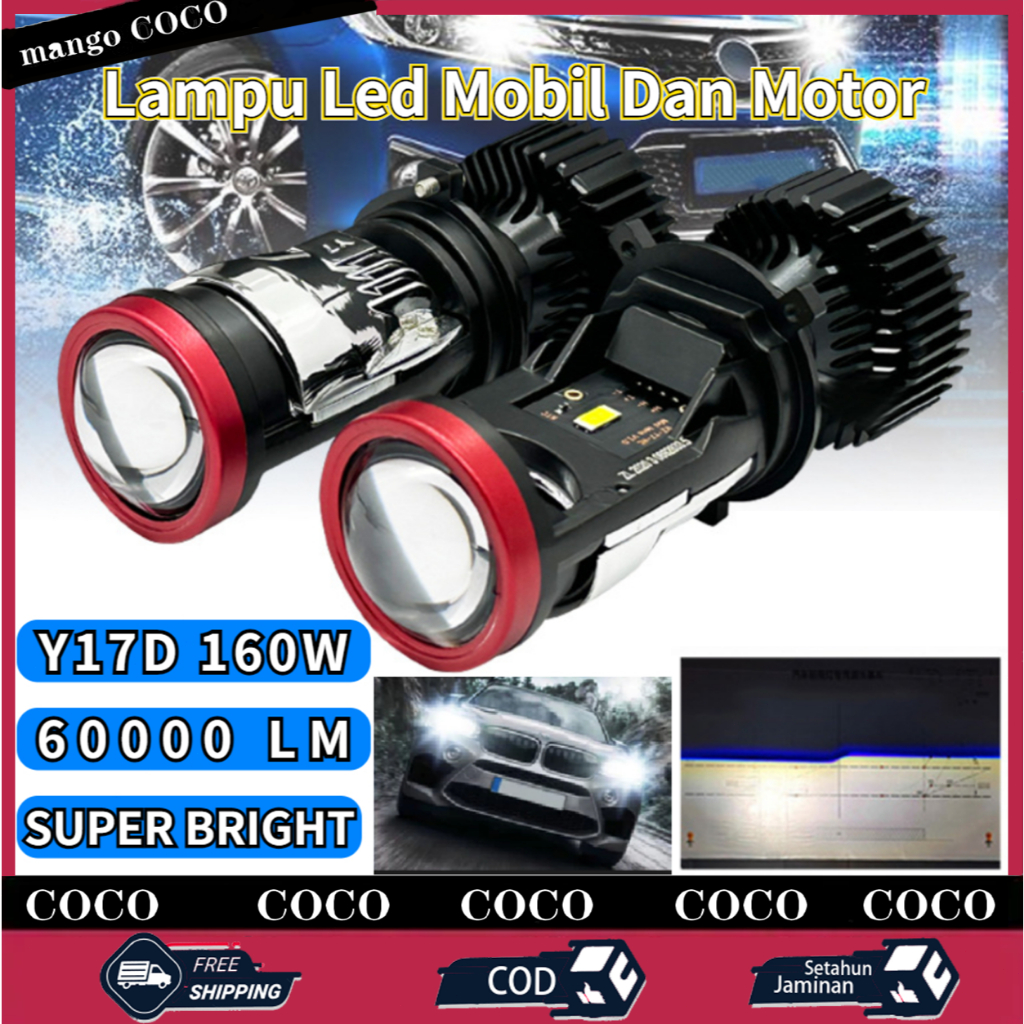 Y17D LAMPU LED MOBIL MOTOR H4 MINI PRTOR PROJIE 160W ORIGINAL SUPER TERANG IP68 WATERPROOF