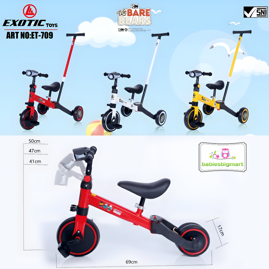 SEPEDA ANAK BALANCE BIKE RODA 3 TIGA EXOTIC ET 717 TRICYCLE PUSH 3IN1