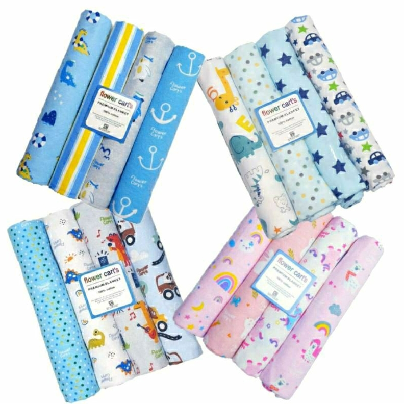 1 Pack isi 4 Bedong Bayi Jumbo Flower Cart's Premium 99 x76 Cm Bedong Planel Lembut Bedong Selimut Flanel Bayi