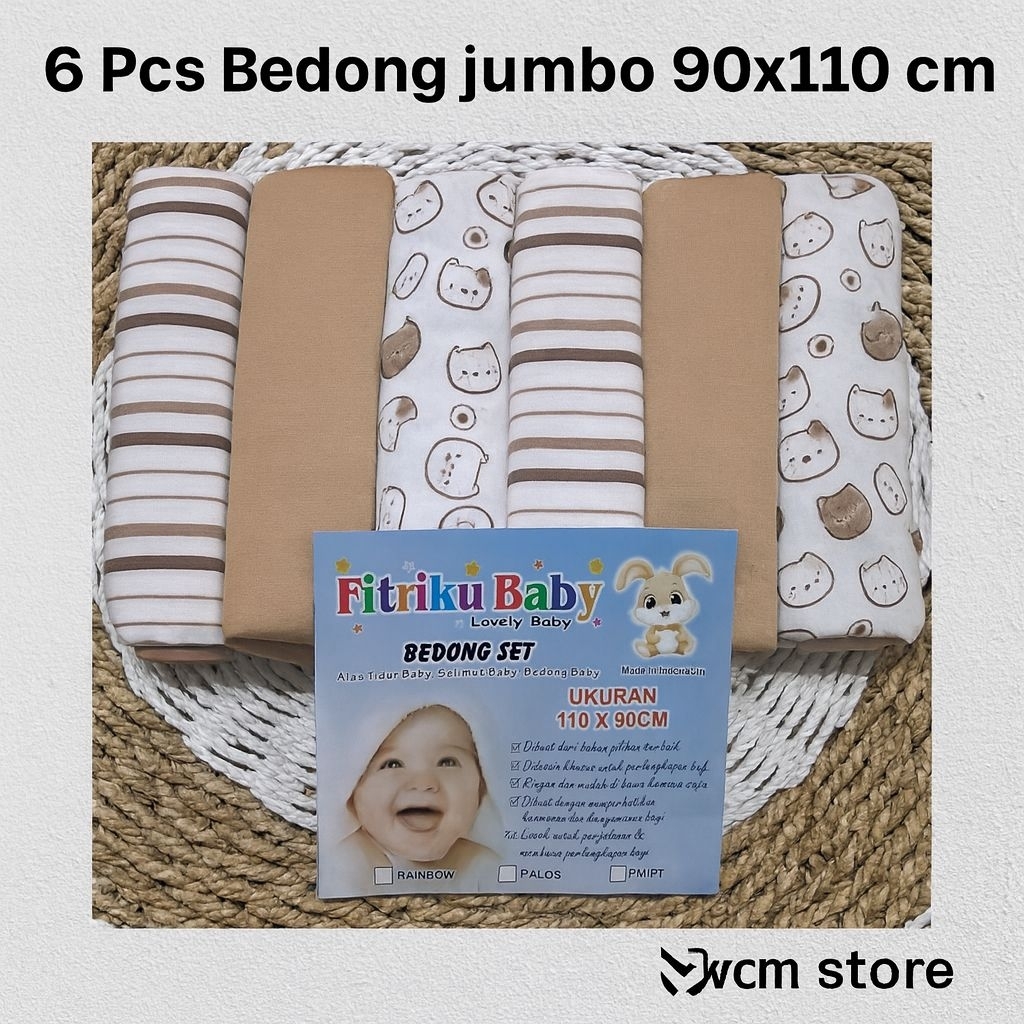 6 Pcs Bedong Jumbo Bayi 90x110 cm Motif & Polos – Kain Lembut Nyaman Newborn"