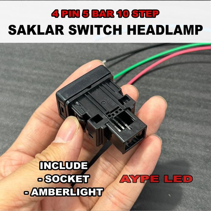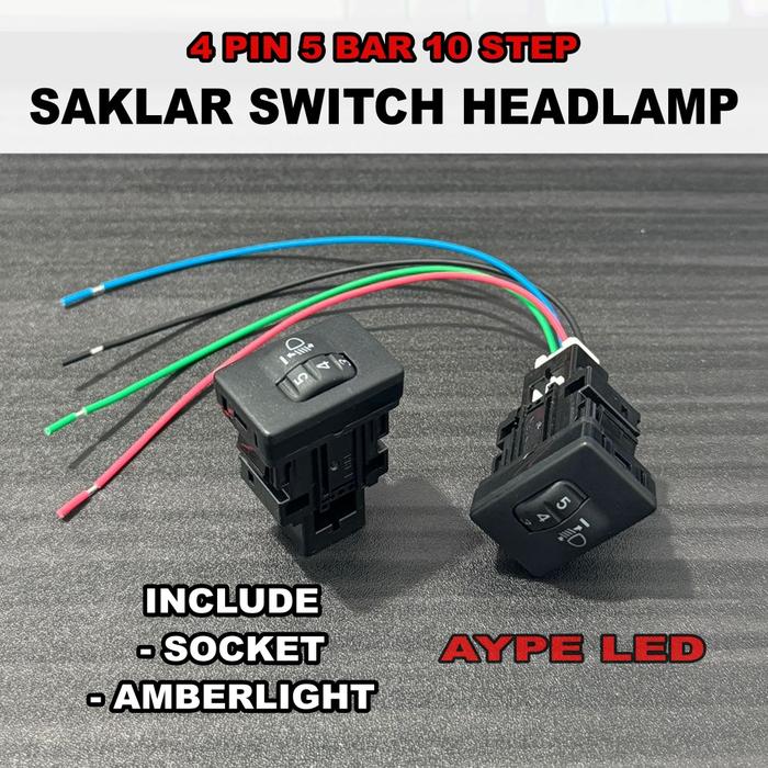 Saklar Angka Switch Headlamp 4 Pin 5 Bar 10 Step Amberlight include Socket Saklar Switch Mobil Motor - SAKLAR + SOCKET