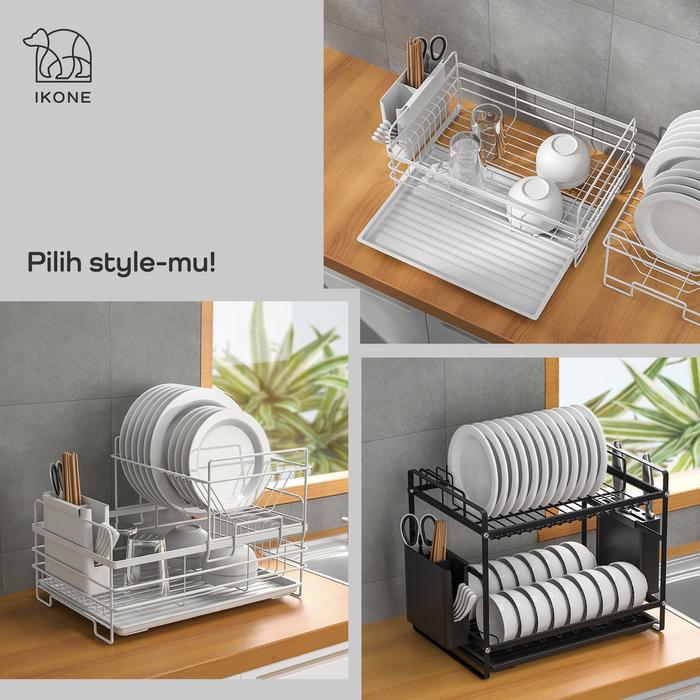 IKONERAKU Rak Piring Nordic Style Bertingkat Rak Dapur Rak Wastafel Peralatan Dapur Kokoh Anti Karat