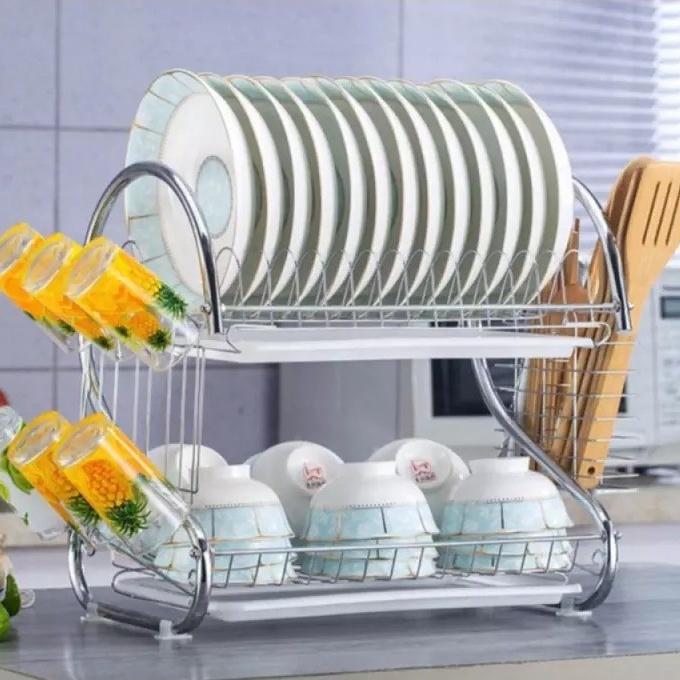 Rak Piring Stainless 2Tingkat Minimalis Rak Piring Serbaguna Rak Piring Garpu