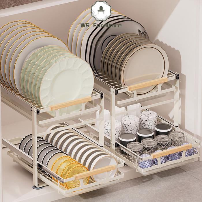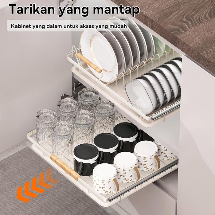 Rak Piring Pengering Piring Lemari Dapur Tarik Keluar Rak Piring Penyelenggara Rak Penyimpanan