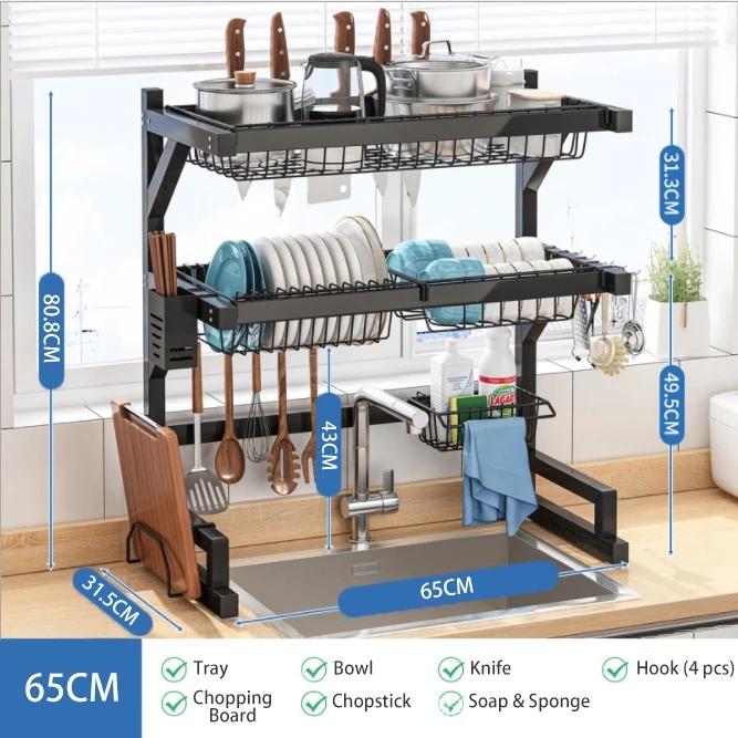 Rak Piring Wastafel 2 Tingkat Besi Stainless Hitam Rak Piring Dan Peralatan Dapur Kokoh Kuat