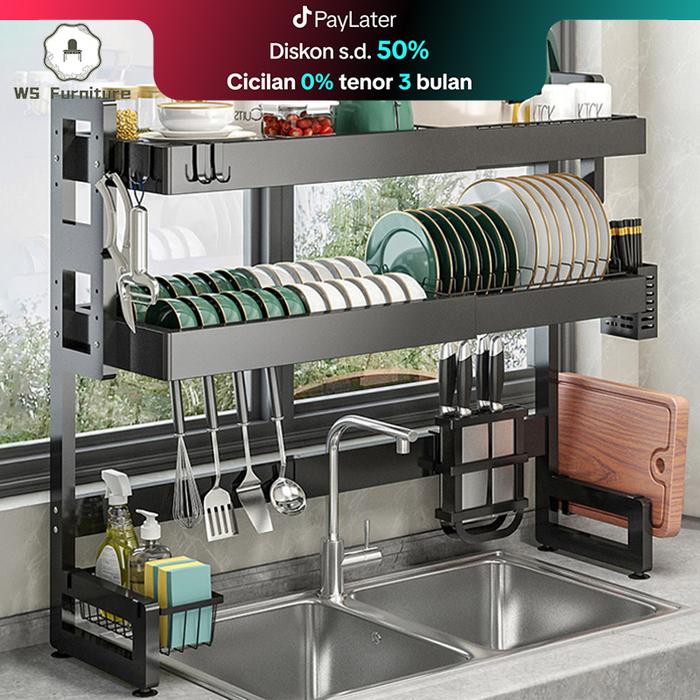 Rak Wastafel Dapur Rak Cuci Piring Multifungsi Stainless Steel Rak Dapur