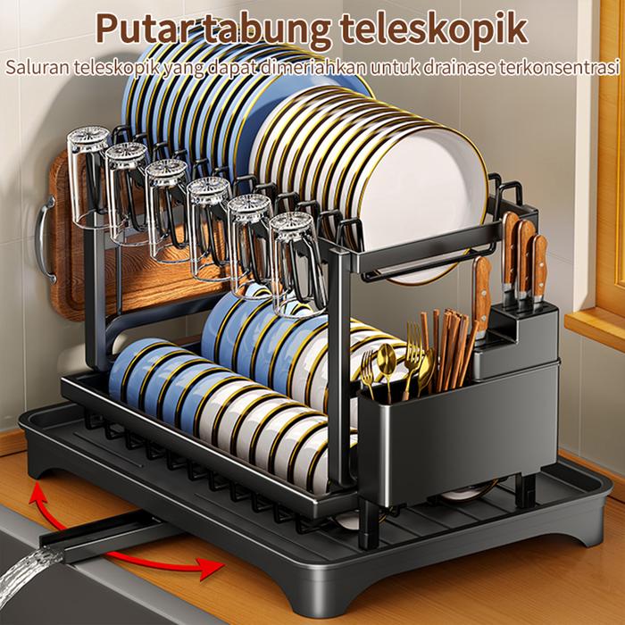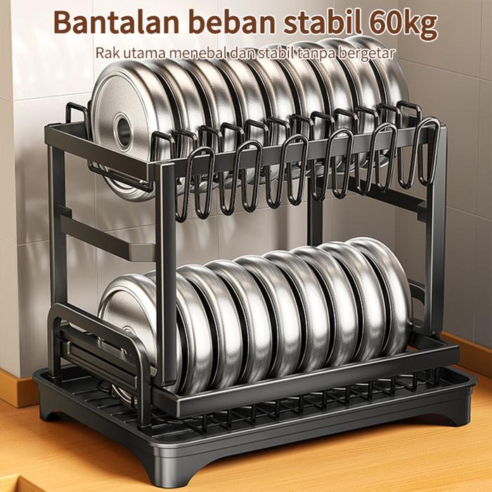 Rak Dapur Tempat Piring Stainless Penyimpanan Mangkuk Gelas Pisau Rak Untuk Cangkir- 2 Lapis Rak